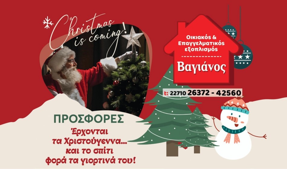Ο Βαγιάνος φέρνει τη γιορτινή ατμόσφαιρα στο τραπέζι και στο καθιστικό με πρακτικές και όμορφες επιλογές. Χριστουγεννιάτικες πιατέλες και πιάτα, σετ ποτηριών και κούπες με σχέδια εποχής, σπάτουλες σιλικόνης και φόρμα για gingerbread house για όσους αγαπούν το γιορτινό ψήσιμο.