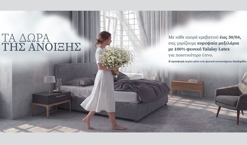 Η προσφορά: Για όλο τον Απρίλιο, με κάθε αγορά κρεβατιού Dunlopillo, παίρνετε δώρο έως και δύο μαξιλάρια φυσικού Latex της επιλογής σας.