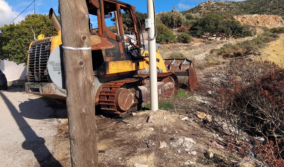 Από τις 18 Ιουνίου, δηλαδή εδώ και 4,5 μήνες, το μηχάνημα αυτό βρίσκεται παροπλισμένο στο σημείο εκείνο (πρόκλησης της πυρκαγιάς) και ουδείς φρόντισε να το απομακρύνει.