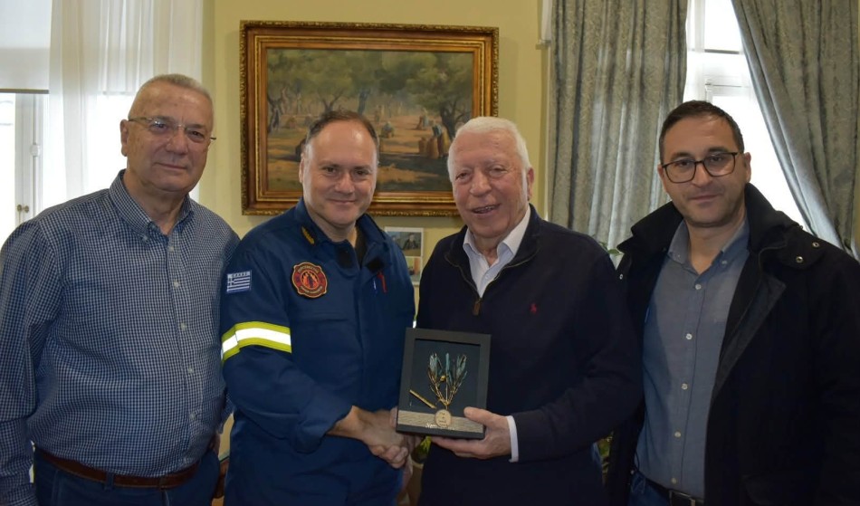 Ο Περιφερειάρχης Βορείου Αιγαίου Κωνσταντίνος Μουτζούρης συναντήθηκε σήμερα με τον νέο Περιφερειακό Διοικητή Πυροσβεστικών Υπηρεσιών Βορείου Αιγαίου, Αρχιπύραρχο, Ευάγγελο Λιακόπουλο, παρουσία του Αντιπεριφερειάρχη Κώστα Αρώνη και του Λευτέρης Παπαϊωάννου Περιφερειακού Συντονιστή Πολιτικής Προστασίας στην Περιφέρεια Βορείου Αιγαίου.