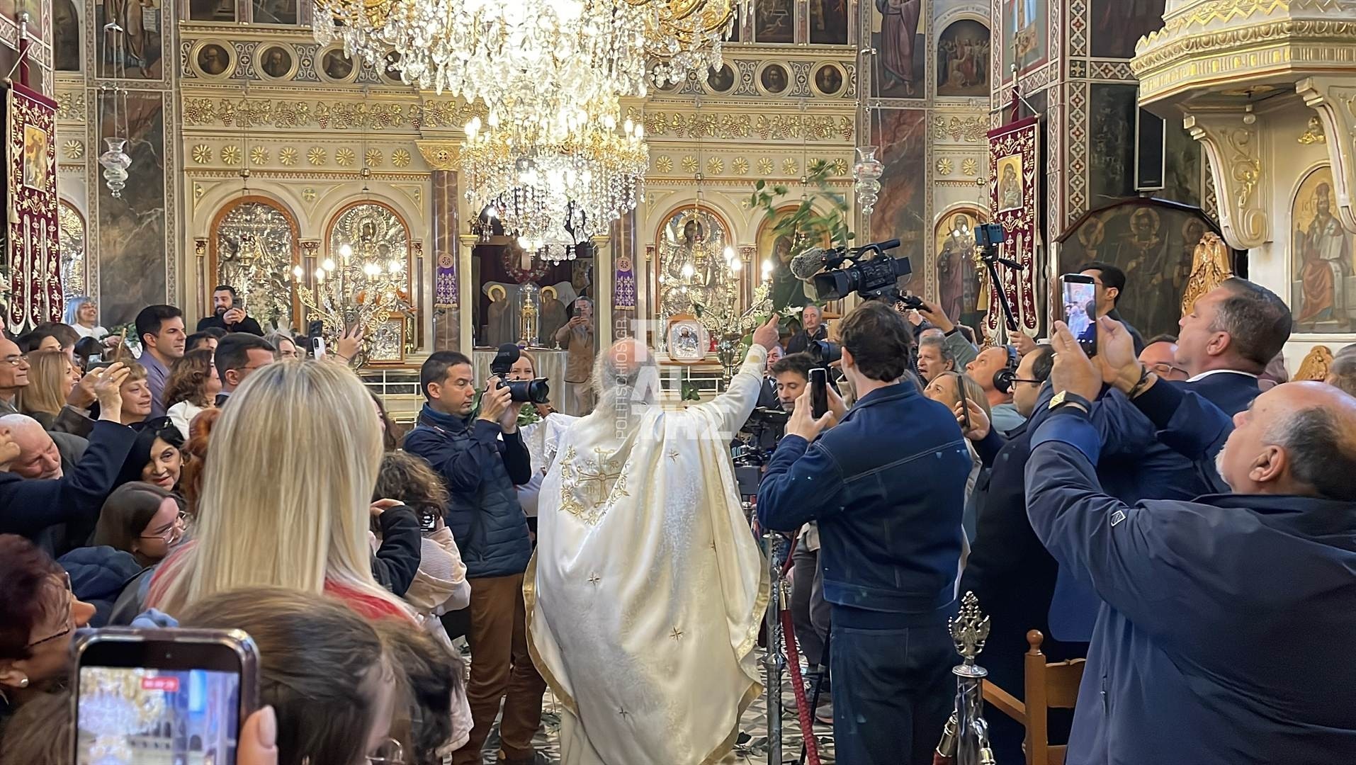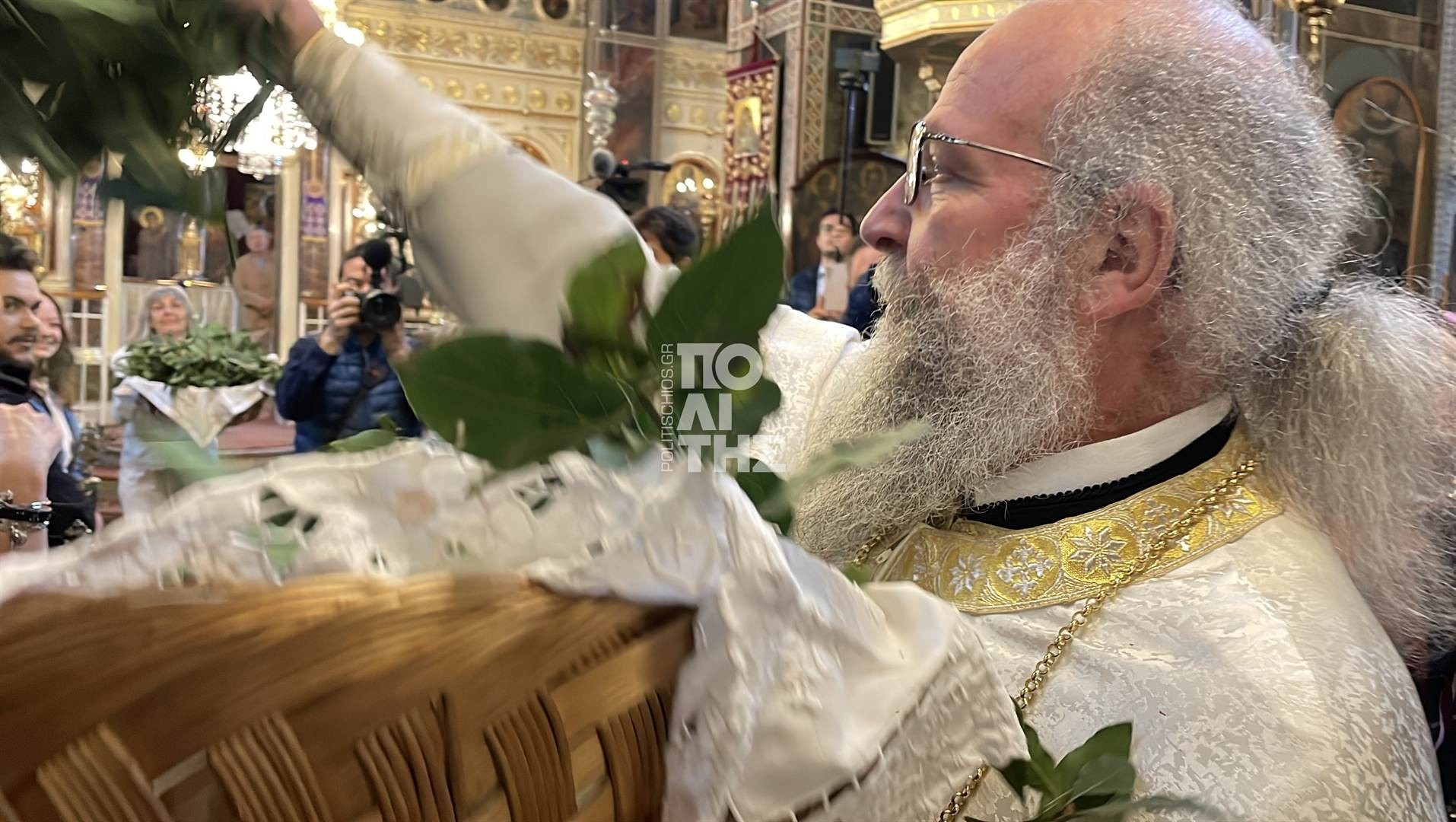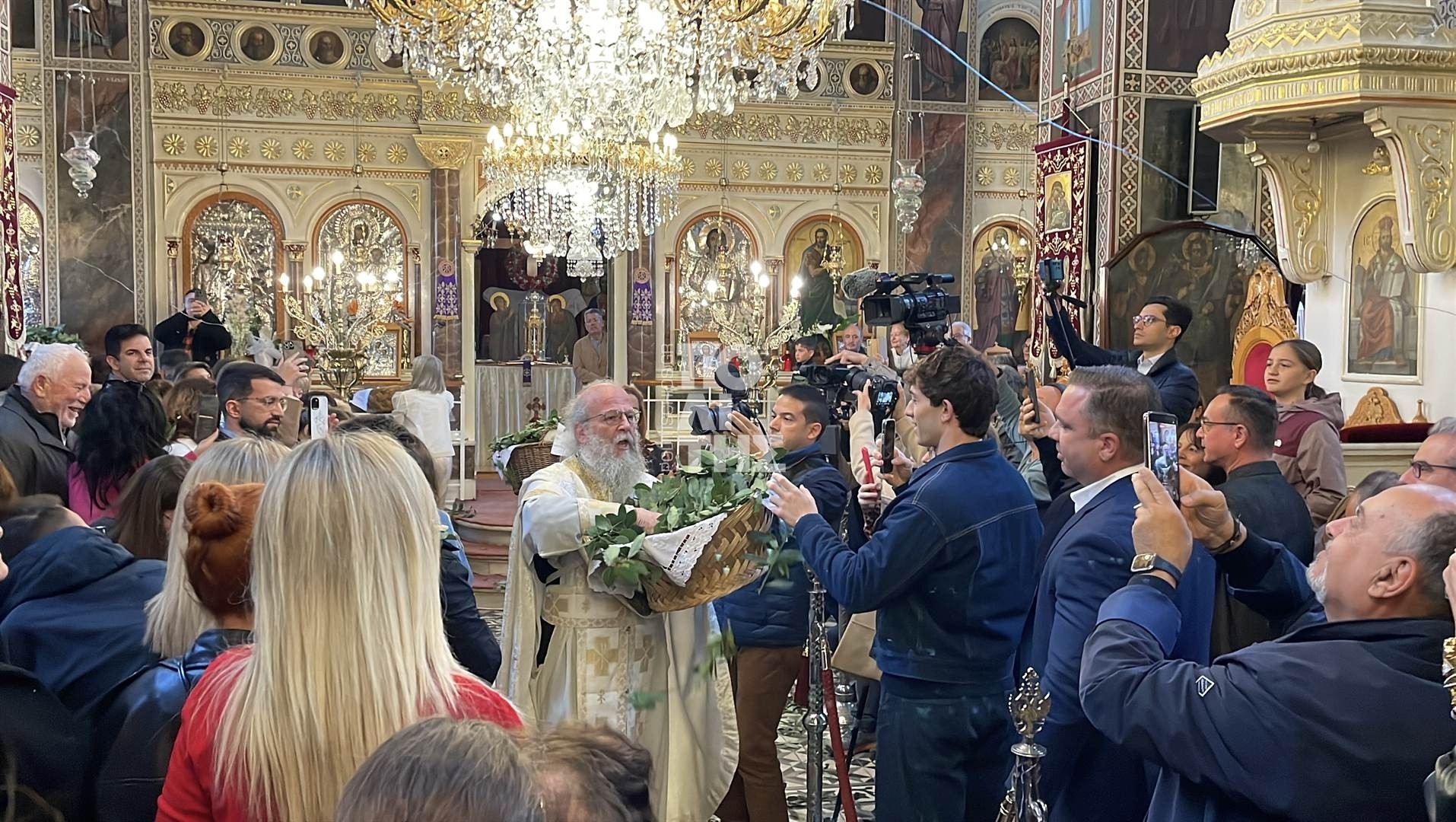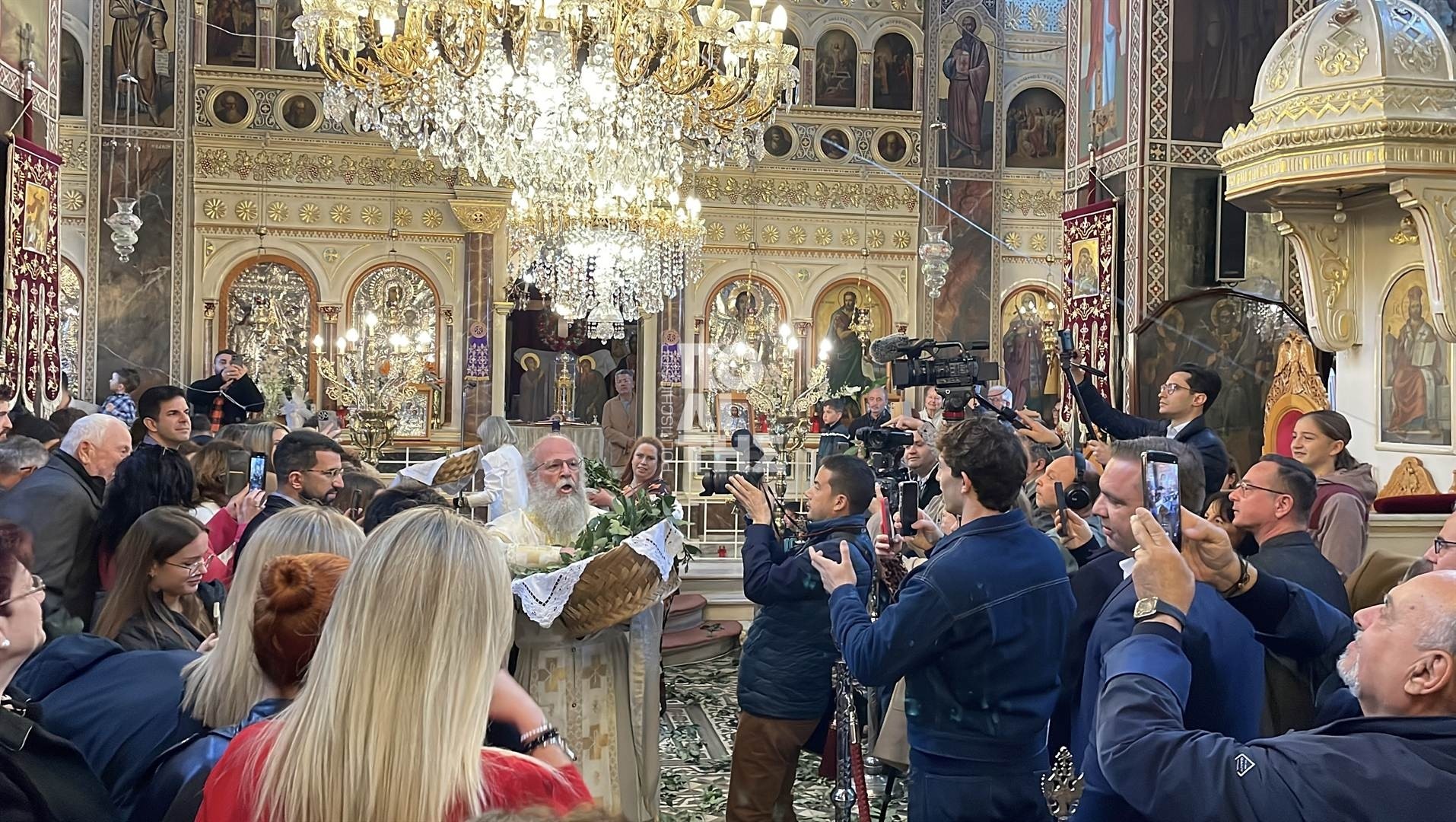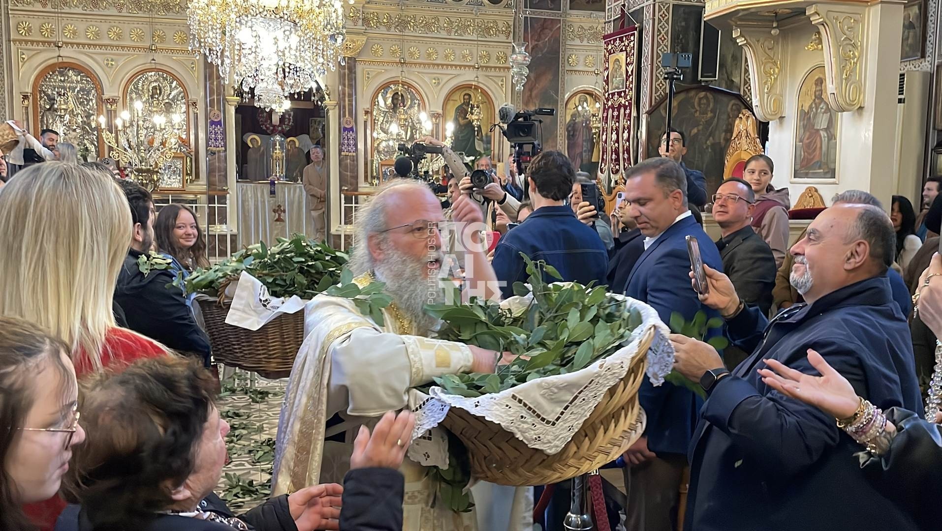 Σε ένα σκηνικό απόλυτης συμμετοχής και συμβολικής έντασης, ο ιερέας σκόρπισε δάφνες, σύμβολα της νίκης και της αιώνιας ζωής, σε ολόκληρο τον ναό. Οι εικόνες ήταν εντυπωσιακές: οι πολυέλαιοι κουνιούνταν σαν από σεισμό και η συγκίνηση κορυφώθηκε, με όλους τους παρευρισκόμενους να μετέχουν ενεργά στην τελετουργία.