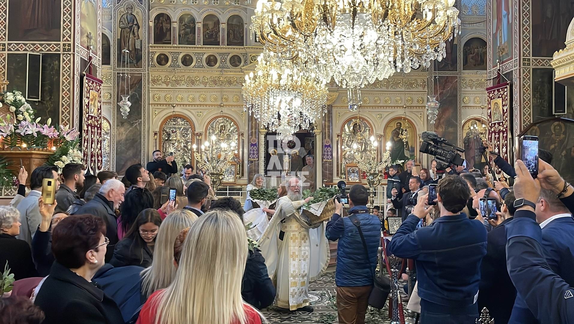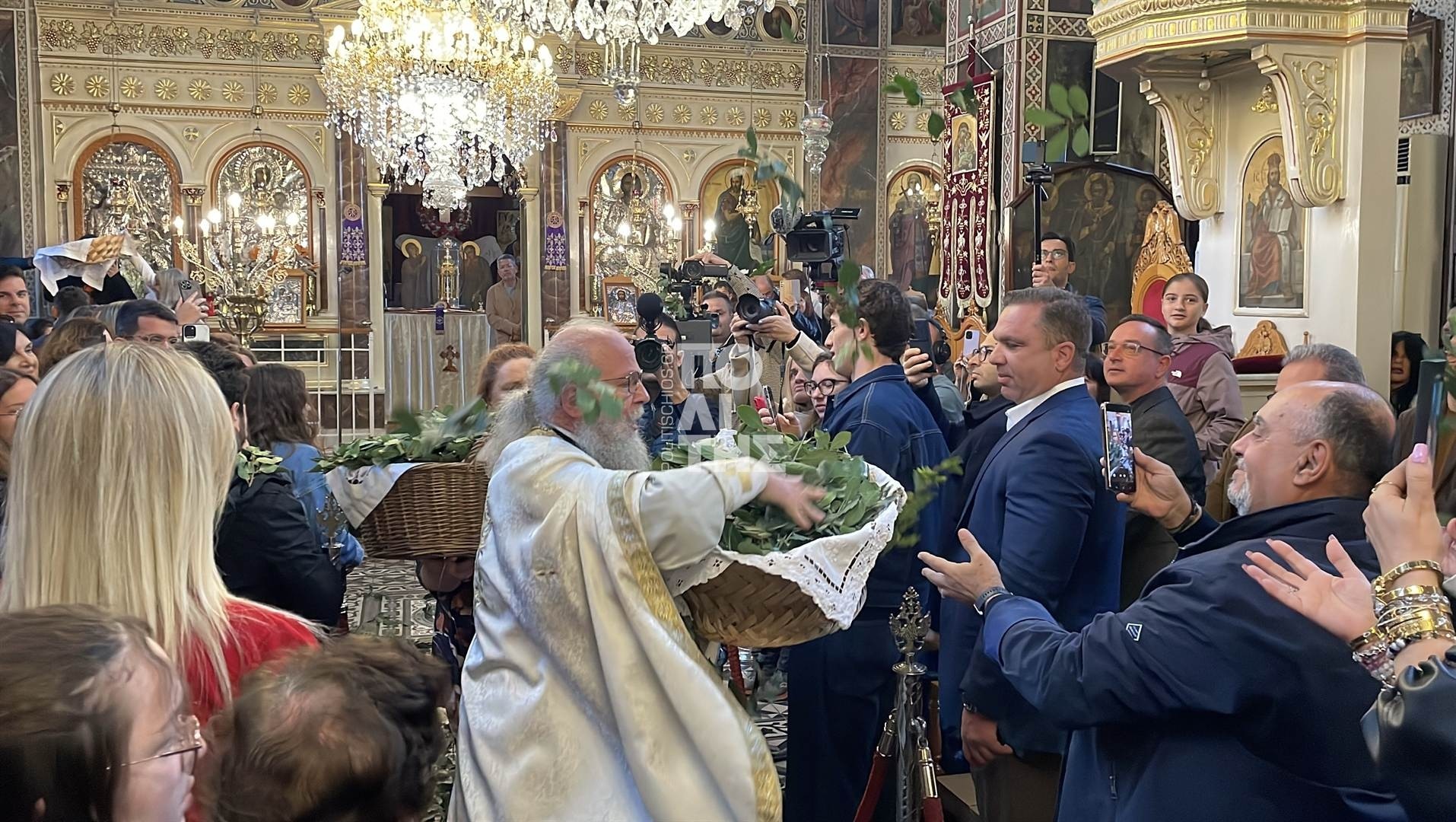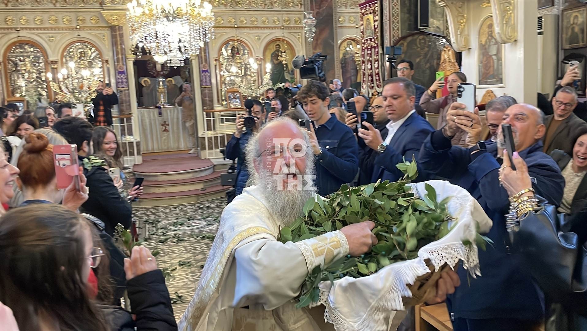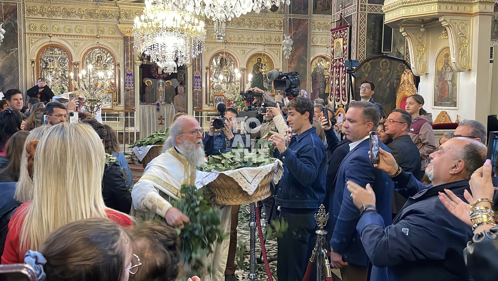 Σε ένα σκηνικό απόλυτης συμμετοχής και συμβολικής έντασης, ο ιερέας σκόρπισε δάφνες, σύμβολα της νίκης και της αιώνιας ζωής, σε ολόκληρο τον ναό. Οι εικόνες ήταν εντυπωσιακές: οι πολυέλαιοι κουνιούνταν σαν από σεισμό και η συγκίνηση κορυφώθηκε, με όλους τους παρευρισκόμενους να μετέχουν ενεργά στην τελετουργία.