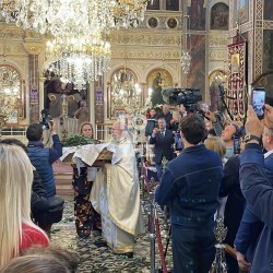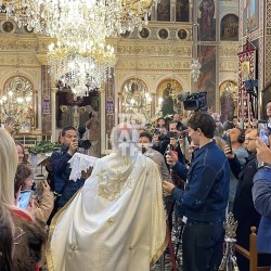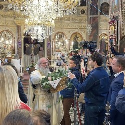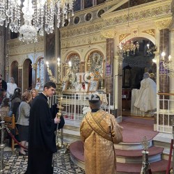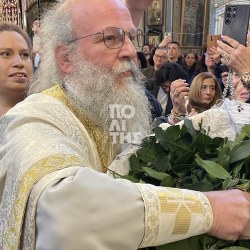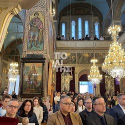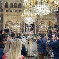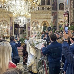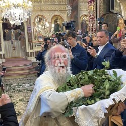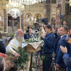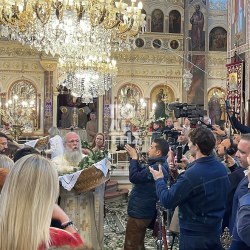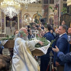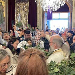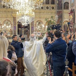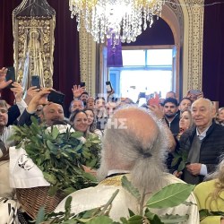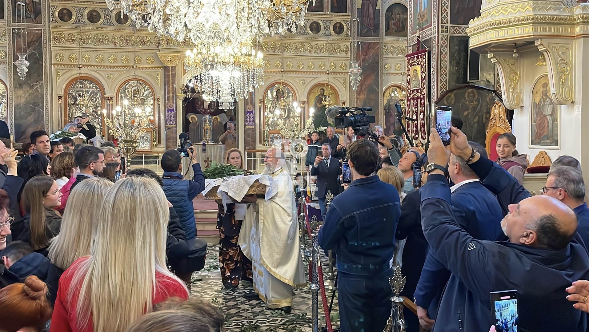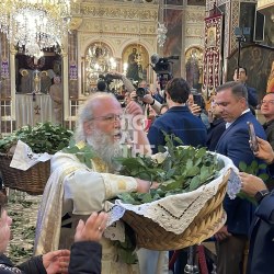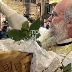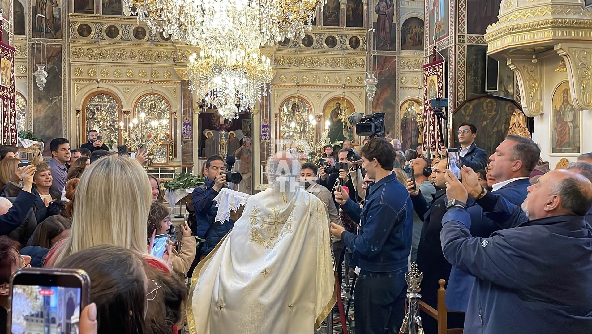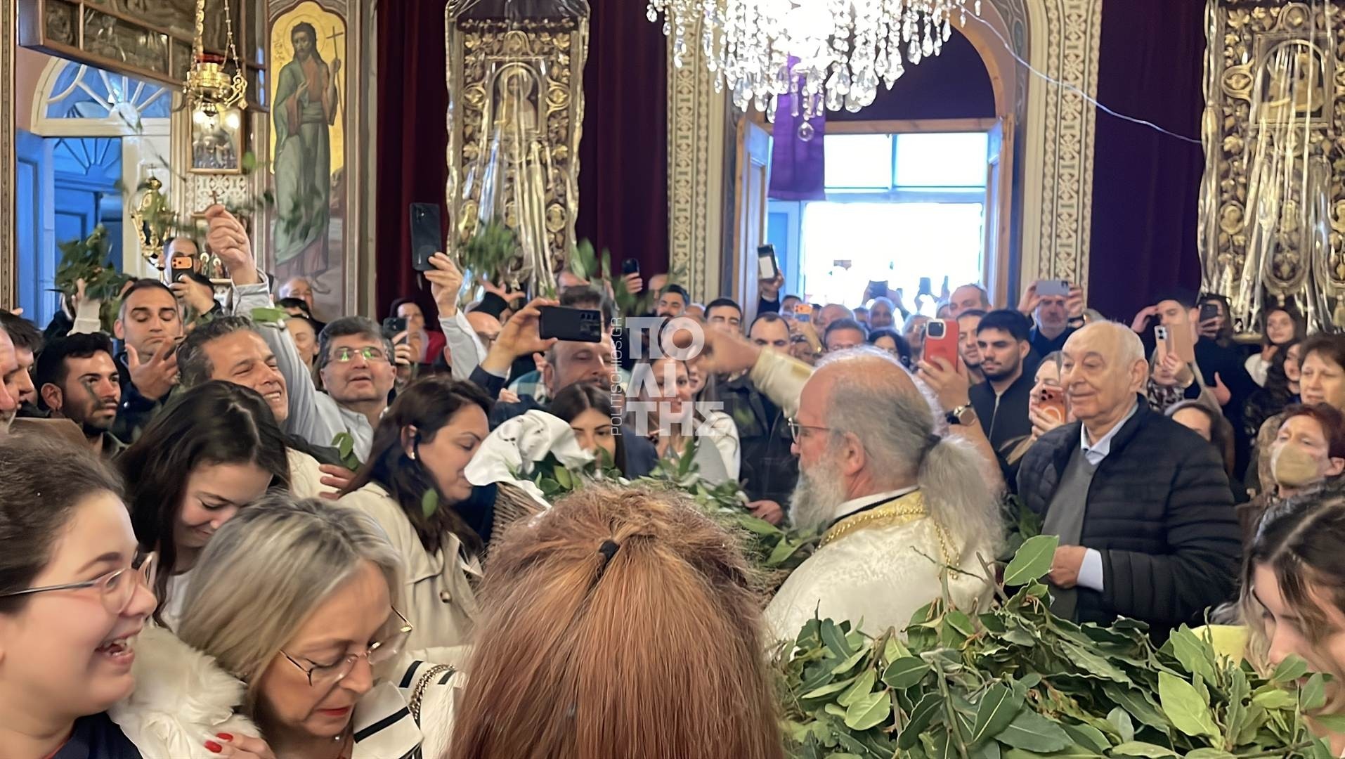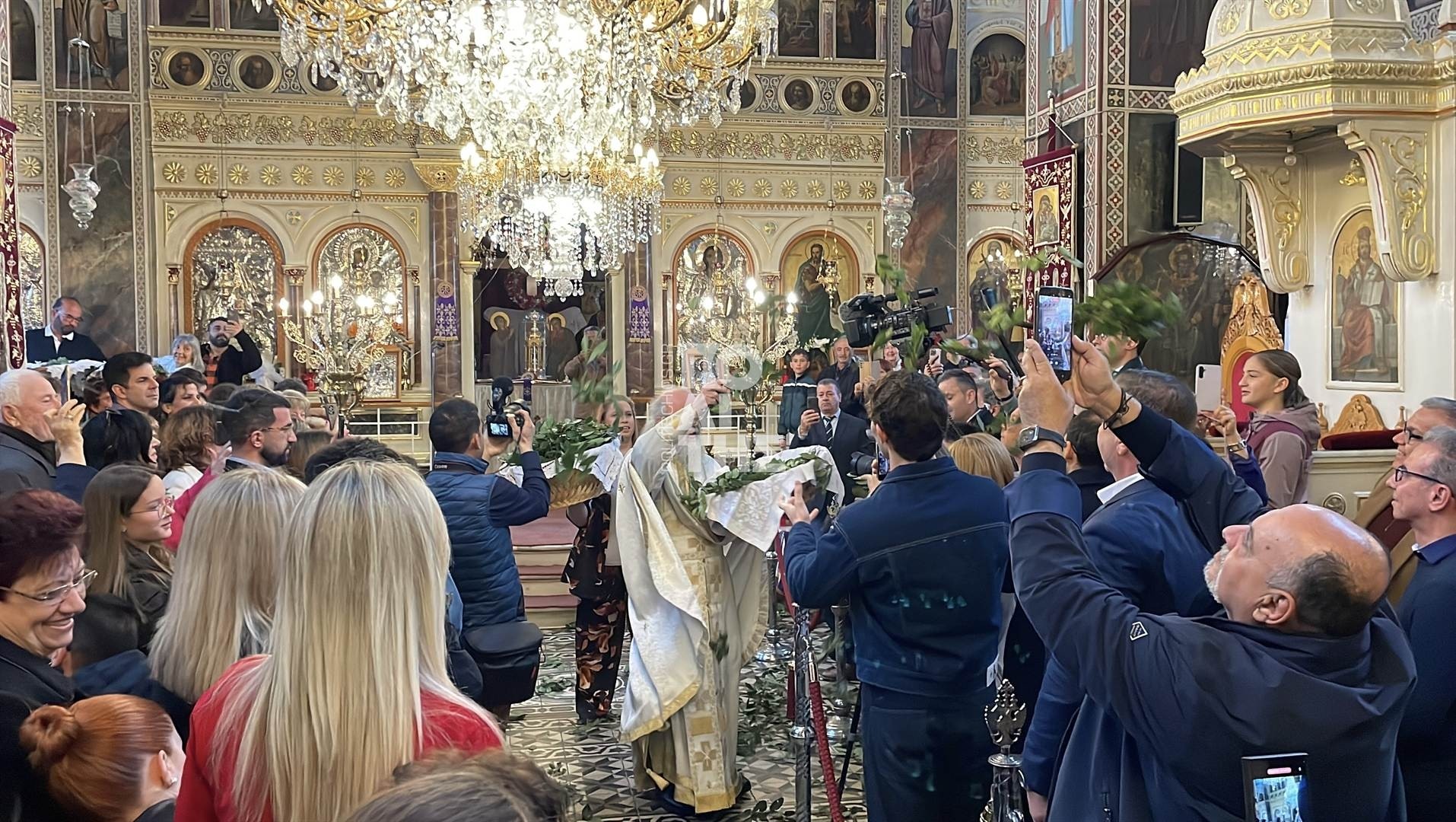 Σε ένα σκηνικό απόλυτης συμμετοχής και συμβολικής έντασης, ο ιερέας σκόρπισε δάφνες, σύμβολα της νίκης και της αιώνιας ζωής, σε ολόκληρο τον ναό. Οι εικόνες ήταν εντυπωσιακές: οι πολυέλαιοι κουνιούνταν σαν από σεισμό και η συγκίνηση κορυφώθηκε, με όλους τους παρευρισκόμενους να μετέχουν ενεργά στην τελετουργία.