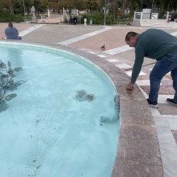 Ιδιαίτερη αναφορά έκανε και στο χρόνιο πρόβλημα της ρίψης αντικειμένων εντός του συντριβανιού, το οποίο επιδεινώνει τη λειτουργία του. Καθημερινά εντοπίζονται πέτρες και άλλα υλικά, που προέρχονται κυρίως από γειτονικές γλάστρες καταστημάτων. «Δυστυχώς κάθε μέρα βρίσκουμε τέτοια σκουπίδια… τα παιδιά τα παίρνουν και τα πετάνε μέσα», τόνισε, επισημαίνοντας ότι η κατάσταση αυτή έχει οδηγήσει ακόμη και σε φθορές φωτιστικών σωμάτων και φραγή του συστήματος ανακύκλωσης.