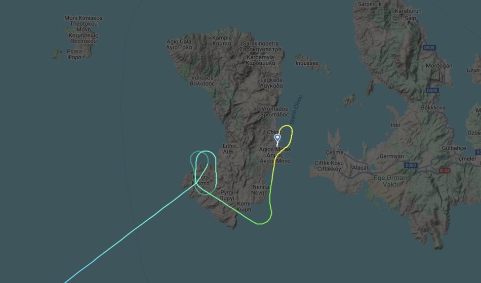 Η τροχιά της πτήσης, όπως καταγράφηκε στο σύστημα εντοπισμού πτήσεων, αποκαλύπτει καθαρά τους συνεχείς κυκλικούς ελιγμούς που πραγματοποιήθηκαν νότια της Χίου. Το αεροσκάφος διατήρησε σταθερό ύψος, αποφεύγοντας την τελική κάθοδο, μέχρι να δοθεί τελικά το σήμα για ασφαλή προσγείωση.