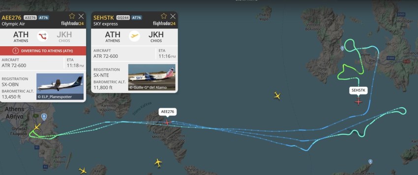 Και τα δύο αεροσκάφη κατάφεραν να φτάσουν στον εναέριο χώρο της Χίου, όπου επιχείρησαν κατ’ επανάληψη προσέγγιση, πραγματοποιώντας κύκλους πάνω από την περιοχή του αεροδρομίου “Ομηρος” και νοτίως της Χίου ωστόσο οι καιρικές συνθήκες δεν επέτρεψαν την ασφαλή προσγείωση. Μετά από αρκετές προσπάθειες, οι κυβερνήτες έλαβαν την απόφαση να επιστρέψουν στην Αθήνα, αφήνοντας πίσω δεκάδες επιβάτες απογοητευμένους και εξαντλημένους.