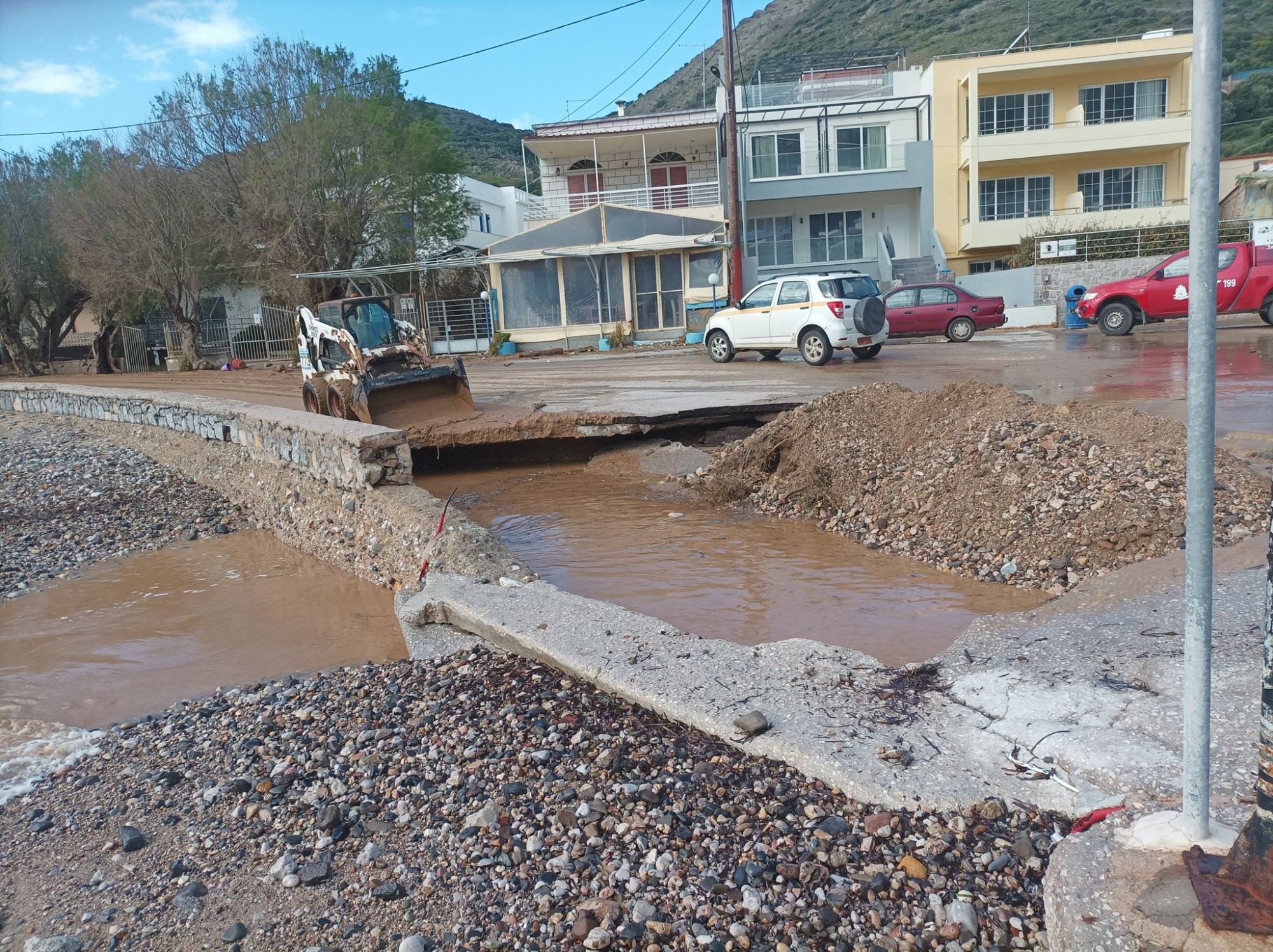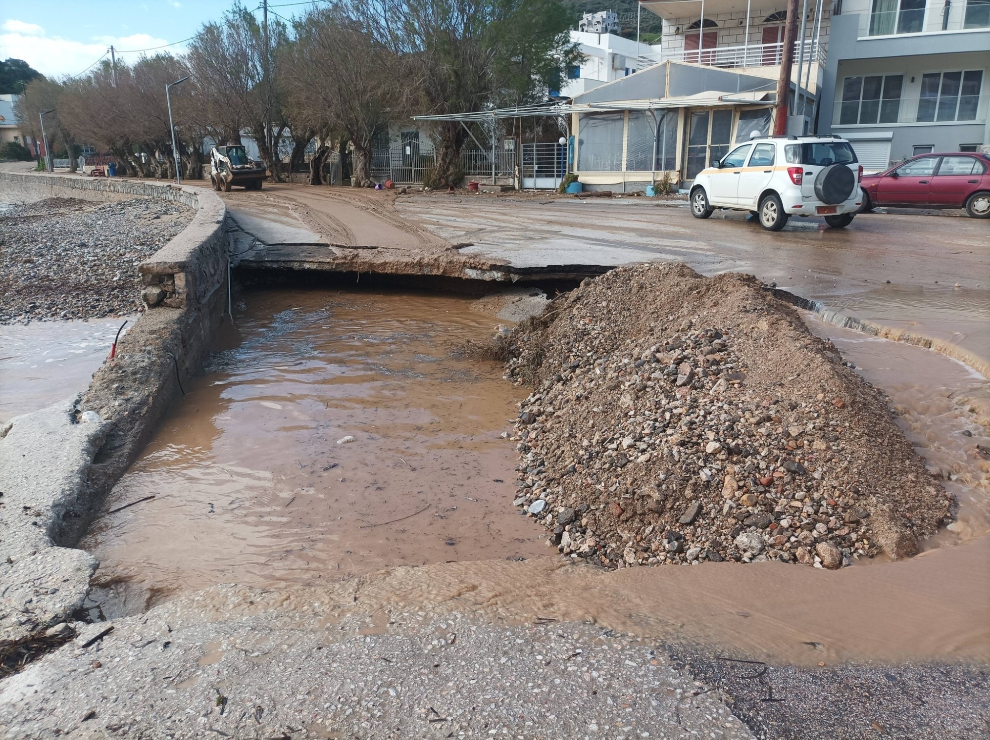 Ιδιαίτερα σοβαρή χαρακτηρίζεται η κατάσταση στο λιμανάκι του Εμπορειού, όπου τμήμα του οδοστρώματος κατέρρευσε, προκαλώντας ανησυχία για την ασφάλεια της περιοχής και την πρόσβαση στο σημείο. Η εικόνα που διαμορφώθηκε μετά το πέρασμα της κακοκαιρίας αποτυπώνει τη σφοδρότητα των φαινομένων, τα οποία έπληξαν σε σύντομο χρονικό διάστημα τη νότια πλευρά του νησιού.