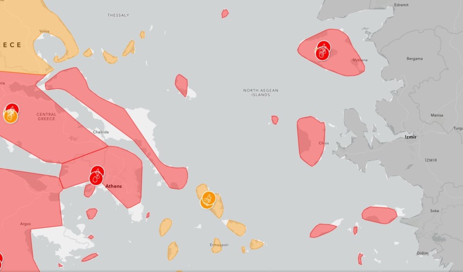 Με νεότερο δελτίο το οποίο κοινοποιήθηκε στο σύστημα Meteoalarm, η Εθνική Μετεωρολογική Υπηρεσία, αναβάθμισε την κακοκαιρία στο Βόρειο Αιγαίο σε επίπεδο κόκκινο συναγερμού, από το "κίτρινο" που την είχε υποβαθμίσει λίγες ώρες νωρίτερα. Σύμφωνα με το νεότερο δελτίο, αναμένονται ισχυρές καταιγίδες, συνοδευόμενες από έντονη βροχή και δυνατούς ανέμους, μεγάλο ύψος υετού καθώς και θυελλώδεις άνεμοι που θα ξεπεράσουν τα 9 μποφόρ.