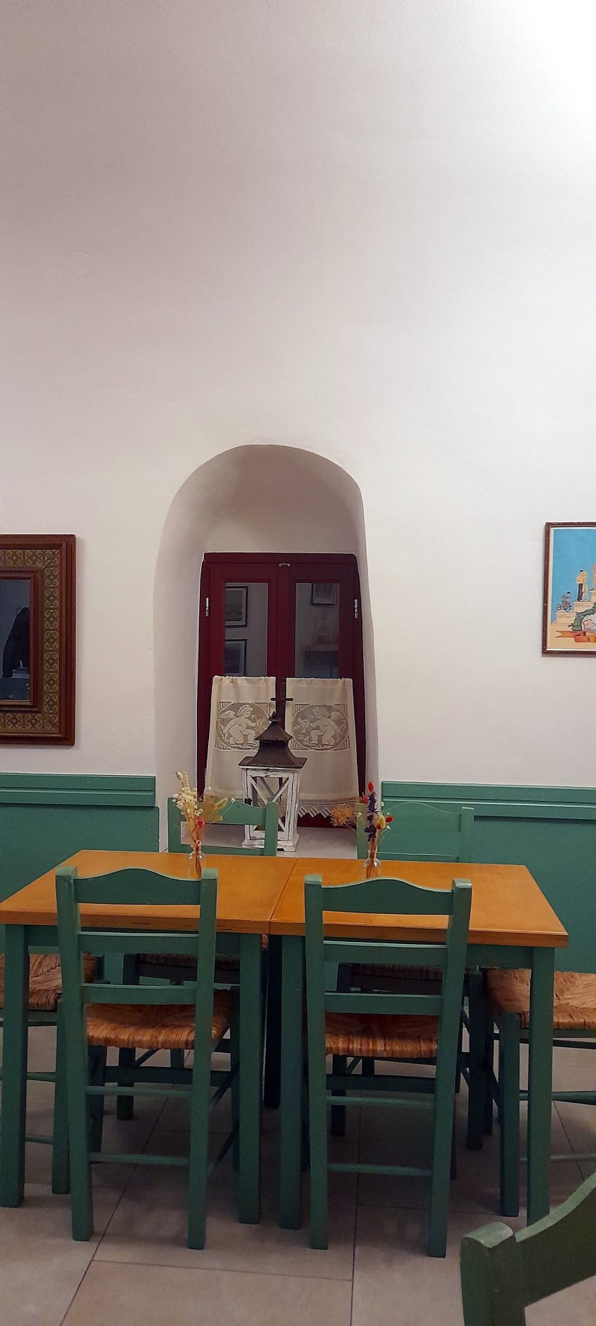 Η χειμωνιάτικη ατμόσφαιρα του χώρου, ζεστή και φιλόξενη, δημιουργεί το ιδανικό σκηνικό για παρέες, καλό κρασί και κουβέντα. Κάθε Σάββατο και Κυριακή, από τις 10:30 έως τις 12:30, σερβίρεται παραδοσιακό πρωινό κατόπιν συνεννόησης, μια συνήθεια που έχει γίνει αγαπημένη συντροφιά για τα αργά πρωινά του νησιού.