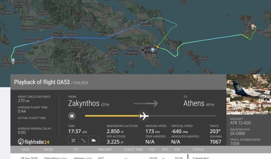 Για την ιστορία η πτήση αναχώρησε από τη Ζάκυνθο στις 18:37 και προσγειώθηκε στη Χίο στις 20:13.