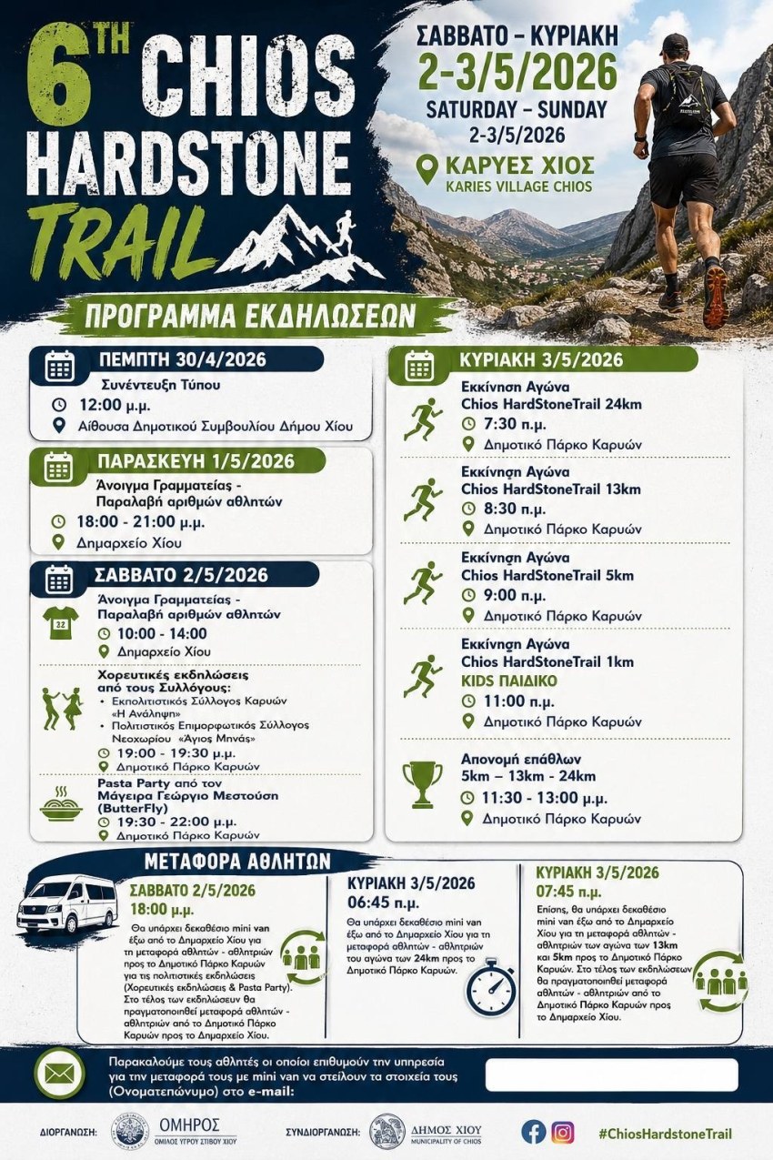 - Κυριακή Αγώνων (3/5): Όλοι οι αθλητές και επισκέπτες πρέπει να βρίσκονται στο χωριό 30 λεπτά πριν την εκκίνηση, καθώς η κυκλοφορία θα διακοπεί πλήρως.