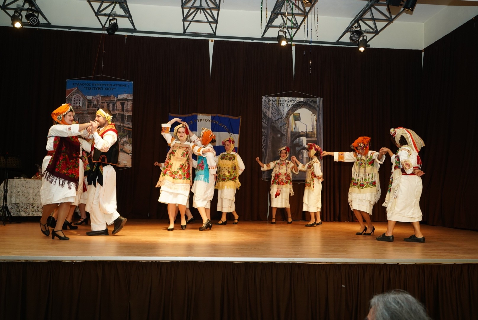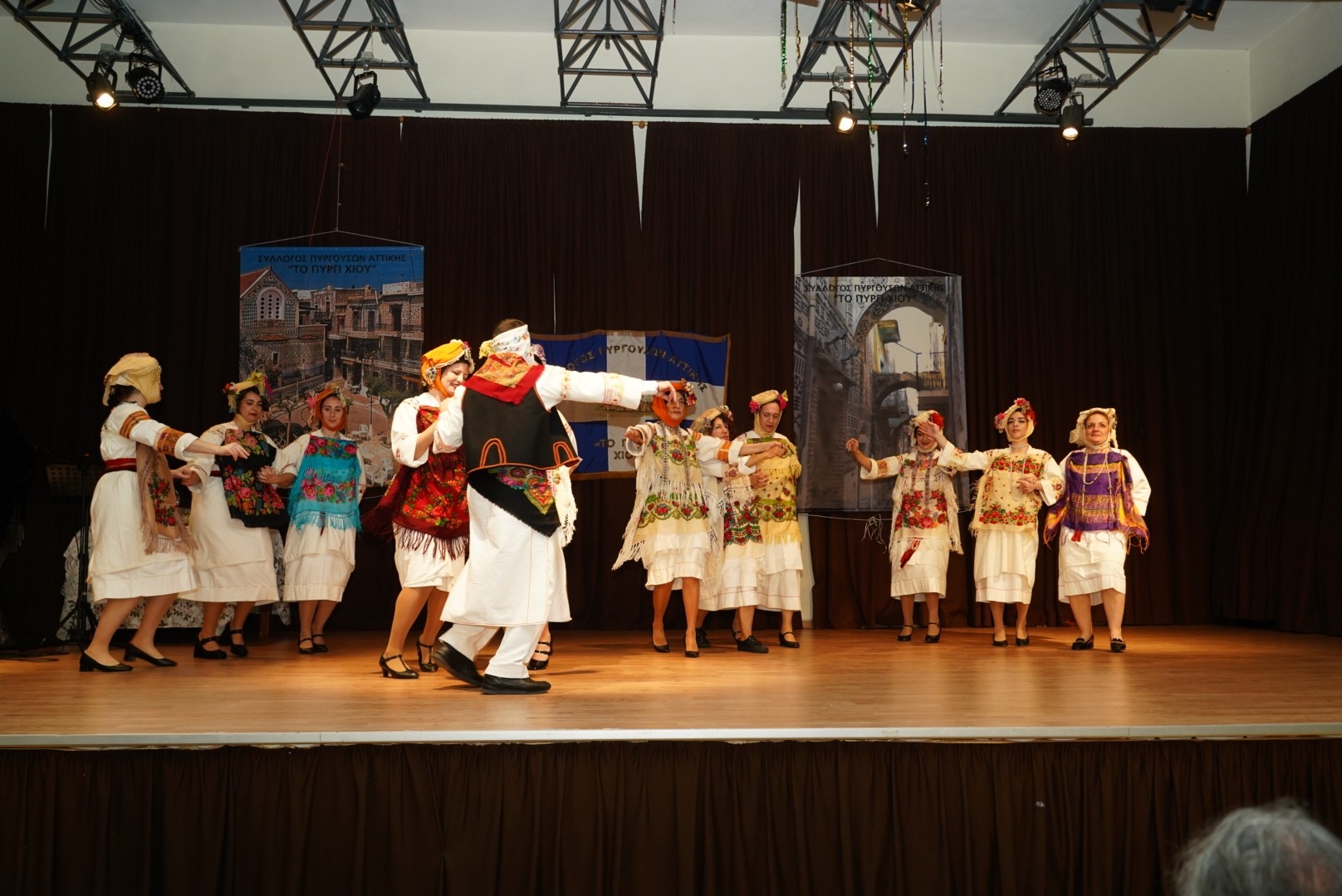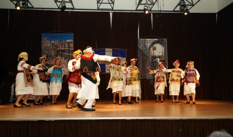 Η ατμόσφαιρα έγινε ακόμη πιο ζεστή με την εμφάνιση της Χορευτικής Ομάδας του Συλλόγου, η οποία εντυπωσίασε με παραδοσιακούς χορούς φορώντας τις αυθεντικές, πλουμιστές πυργούσικες φορεσιές. Παράλληλα, η Χορωδία του Ωδείου Χαϊδαρίου ταξίδεψε το κοινό με τα Χιώτικα παινέματα και χριστουγεννιάτικα τραγούδια, αποσπώντας το θερμό χειροκρότημα.
