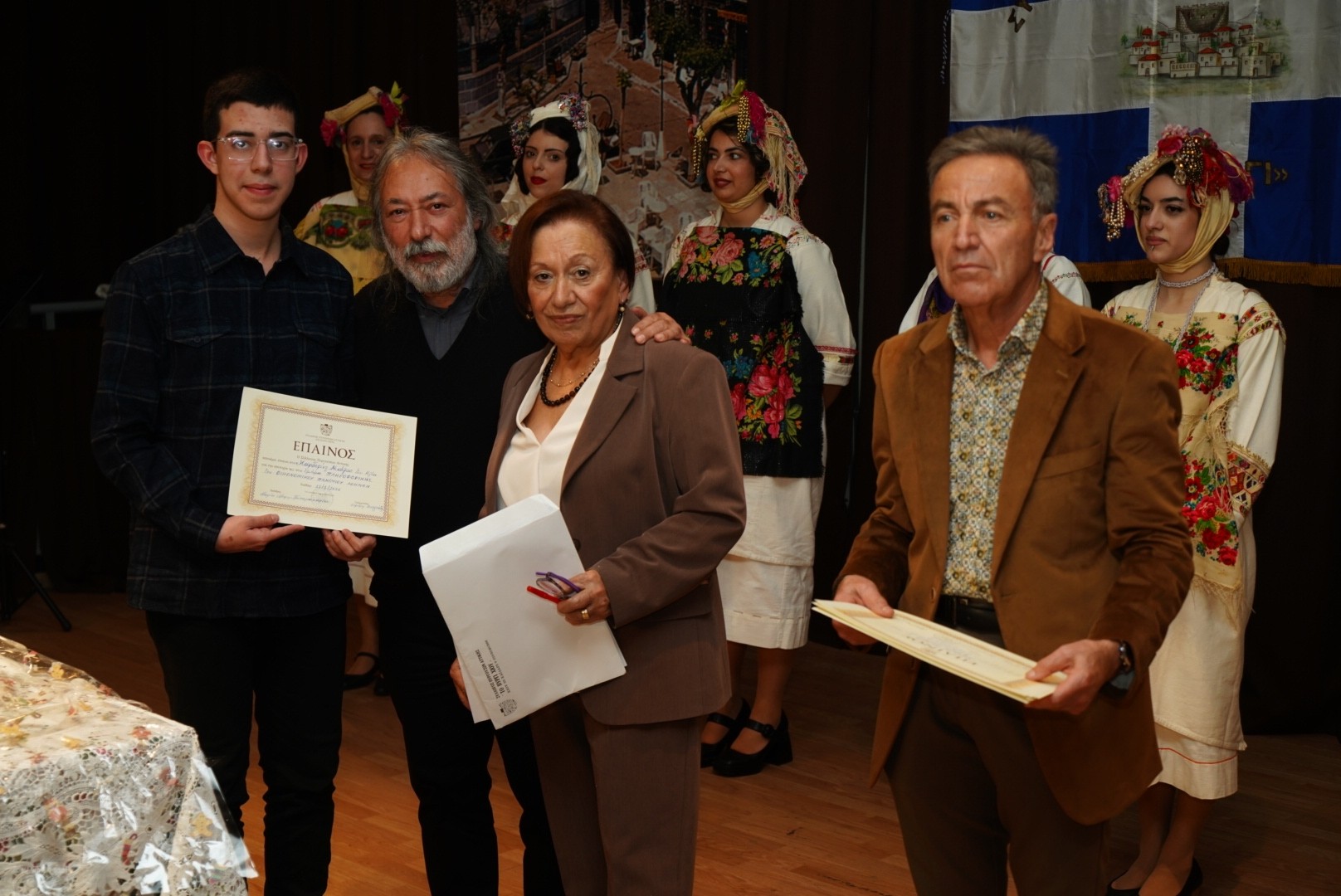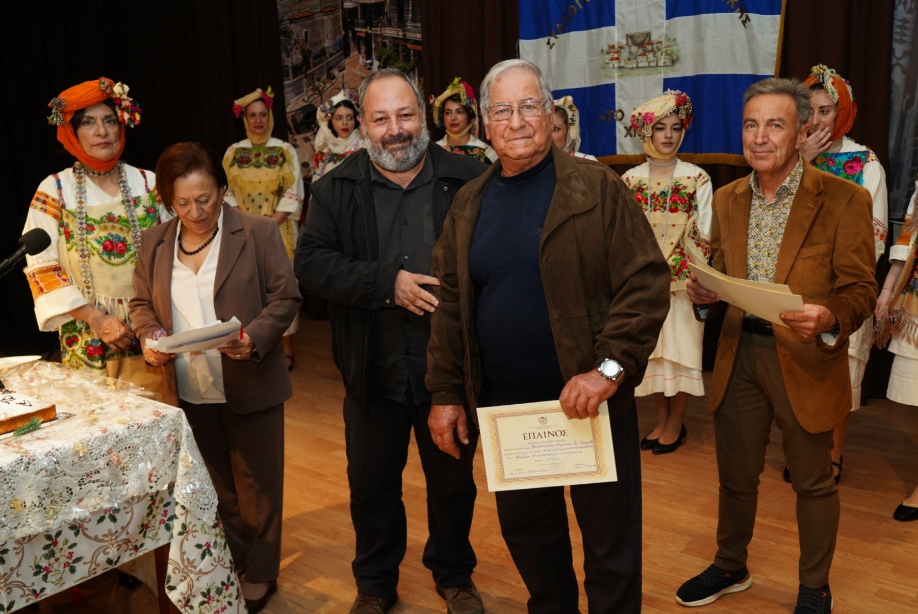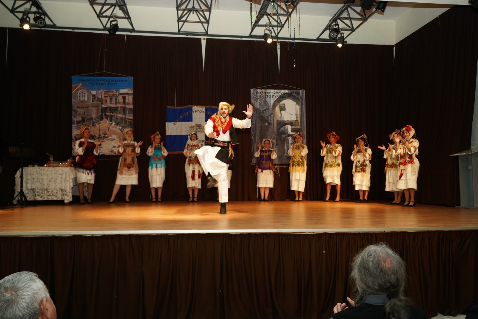 Η ατμόσφαιρα έγινε ακόμη πιο ζεστή με την εμφάνιση της Χορευτικής Ομάδας του Συλλόγου, η οποία εντυπωσίασε με παραδοσιακούς χορούς φορώντας τις αυθεντικές, πλουμιστές πυργούσικες φορεσιές. Παράλληλα, η Χορωδία του Ωδείου Χαϊδαρίου ταξίδεψε το κοινό με τα Χιώτικα παινέματα και χριστουγεννιάτικα τραγούδια, αποσπώντας το θερμό χειροκρότημα.