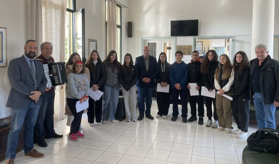 Τους μαθητές συνόδευε ο καθηγητής τους Σταύρος Στείρος, ο οποίος έπαιξε ακορντεόν, δημιουργώντας μια ιδιαίτερη και ζεστή ατμόσφαιρα, που πλημμύρισε με χαμόγελα τόσο τους εργαζομένους του Δήμου όσο και τον ίδιο τον Δήμαρχο.