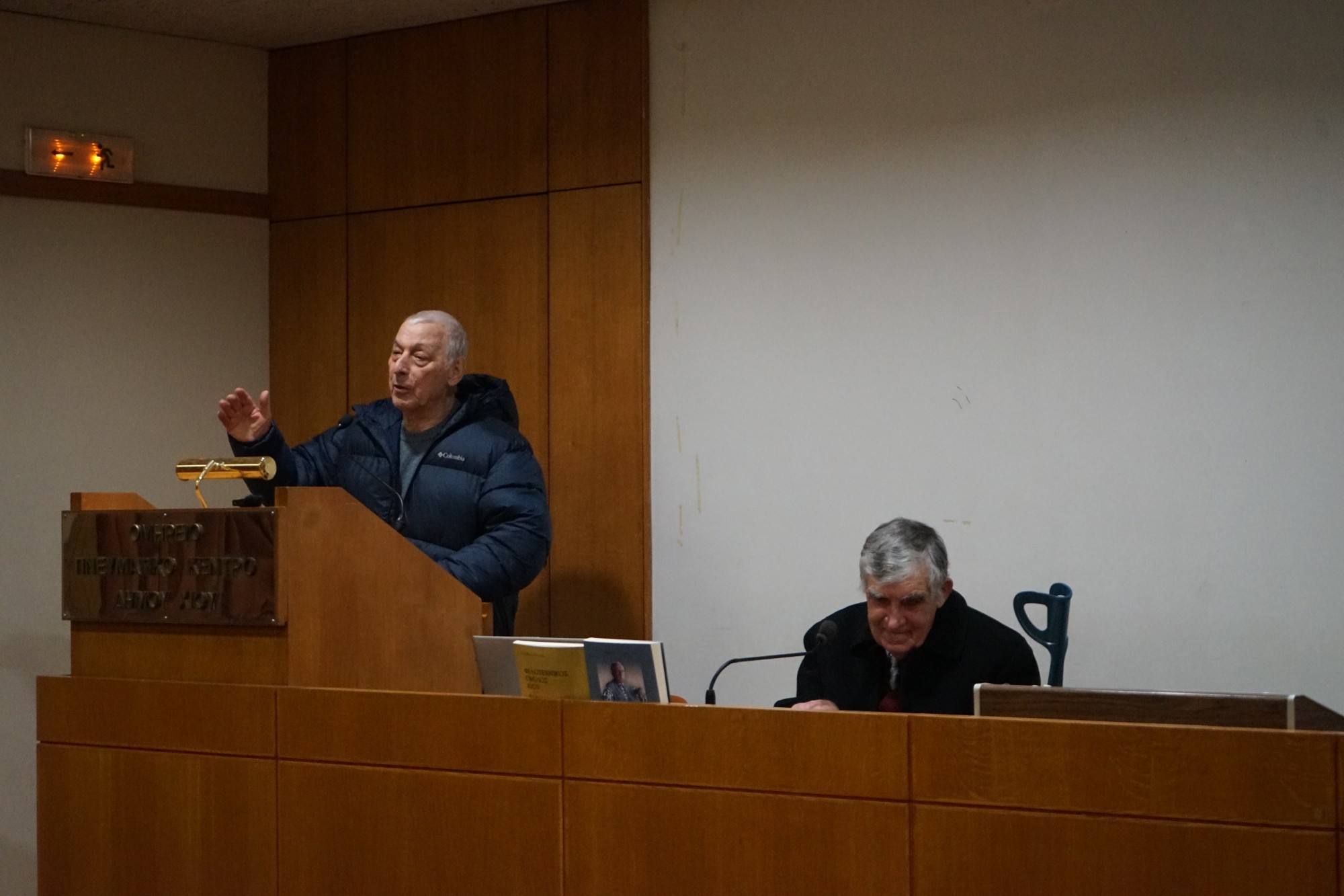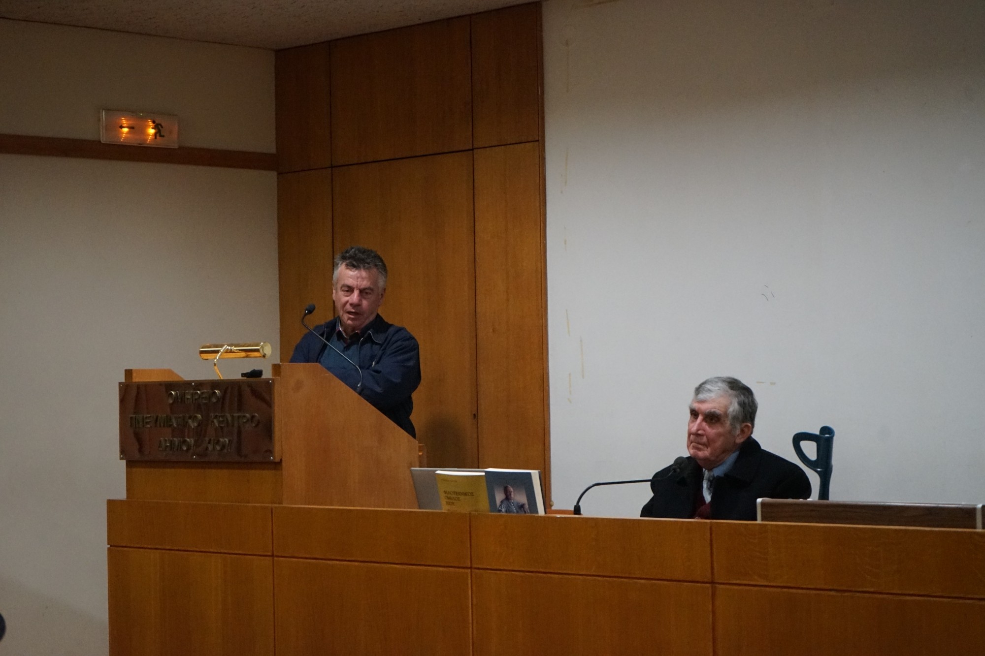 Ο πρόεδρος του Φιλοτεχνικού, Κώστας Αμπανούδης, καθώς και ο φίλος και συνεργάτης του Αντώνης Λάρδας, μίλησαν για τη ζωή και το έργο του Γιώργη Διλμπόη, αλλά και για τη στενή σχέση που είχαν μαζί του από τα μαθητικά τους χρόνια, όταν υπήρξε καθηγητής τους.