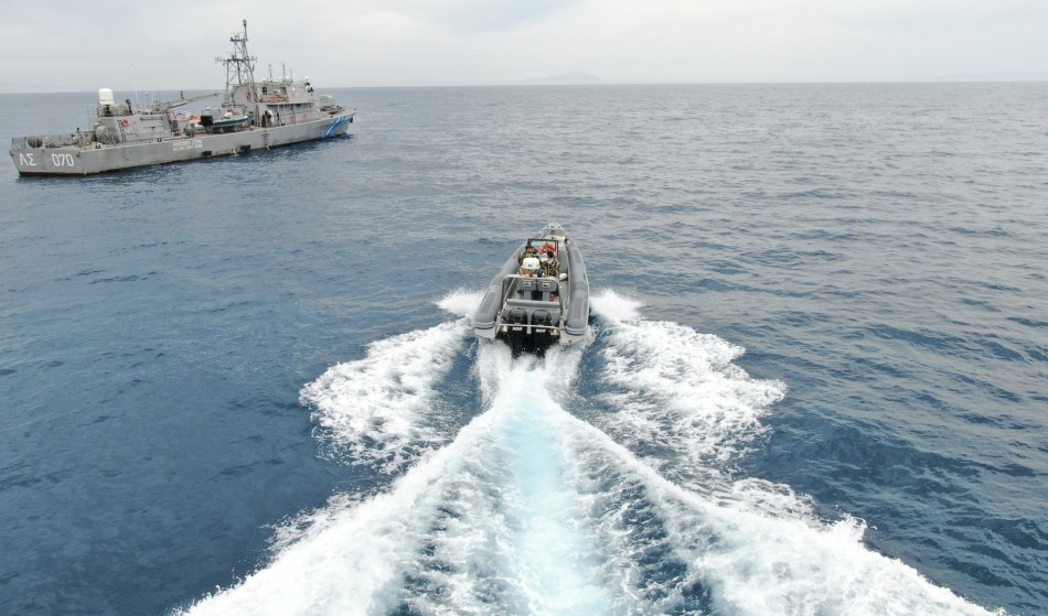 Η καταδίωξη, σύμφωνα με πληροφορίες, ξεκίνησε στα ανοιχτά των Οινουσσών, ενώ ο χειριστής της λέμβου δεν συμμορφώθηκε με τα σήματα του Λιμενικού για να σταματήσει.