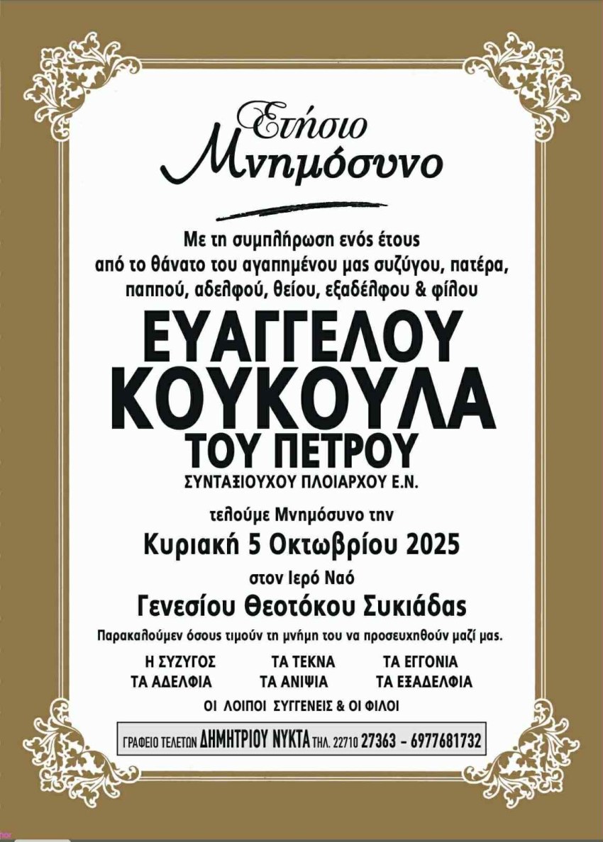 τελούμε μνημόσυνο την Κυριακή 5 Οκτωβρίου 2025