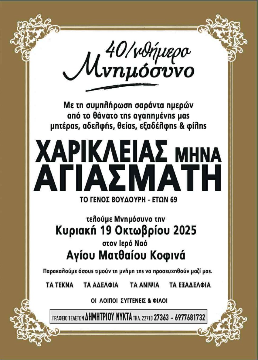 ΧΑΡΙΚΛΕΙΑΣ ΜΗΝΑ ΑΓΙΑΣΜΑΤΗ