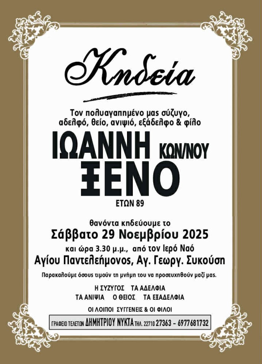 Παρακαλούμε όσους τιμούν τη μνήμη του να προσευχηθούν μαζί μας.