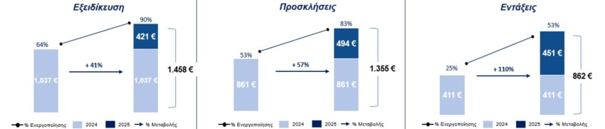 • Εξειδίκευση: αυξήση από 64% και 1.037 εκατ. ευρώ σε 90% και 1.458 εκατ. ευρώ (+41%)
