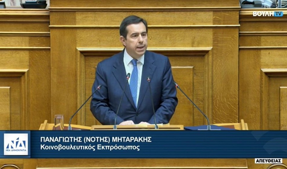 Την πάγια εθνική στρατηγική της χώρας στα ζητήματα εξωτερικής πολιτικής και άμυνας, αλλά και τις πολιτικές προτεραιότητες ενόψει της επικείμενης Συνταγματικής Αναθεώρησης, ανέπτυξε ο Κοινοβουλευτικός Εκπρόσωπος της Νέας Δημοκρατίας και βουλευτής Χίου, Νότης Μηταράκης, μιλώντας στην Ολομέλεια της Βουλής, στο πλαίσιο της συζήτησης του σ/ν του Υπουργείου Εθνικής Άμυνας.