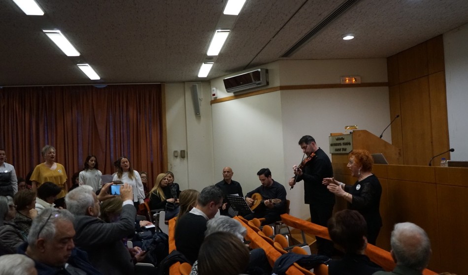 Η «Χορωδία των Χρωμάτων», που συμμετείχε στη διοργάνωση μαζί με τη «Μούσα Ελληνική», απέδωσε με αρμονία δύο φωνών παραδοσιακά τραγούδια της προσφυγιάς, της ξενιτιάς και του μισεμού, για τα οποία η Ελευθερία Λυκοπάντη μίλησε στο κοινό, παρουσιάζοντας το ιστορικό και πολιτισμικό τους υπόβαθρο.
