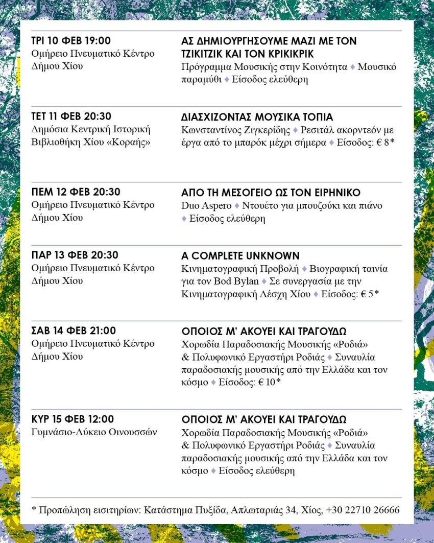 Με μηνύματα πολιτιστικής εξωστρέφειας ξεκινά το φετινό Χίος Music Festival, μία θεσμοθετημένη πλέον διοργάνωση που συνδέει τη μουσική με την εκπαιδευτική και κοινωνική δράση σε όλο το νησί.