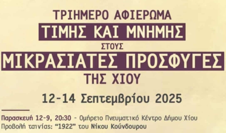 Ακολουθήστε μας στο Google News. Μπείτε στην Viber ομάδα μας και δείτε όλες τις ειδήσεις από τη Χίο και το Βόρειο Αιγαίο.