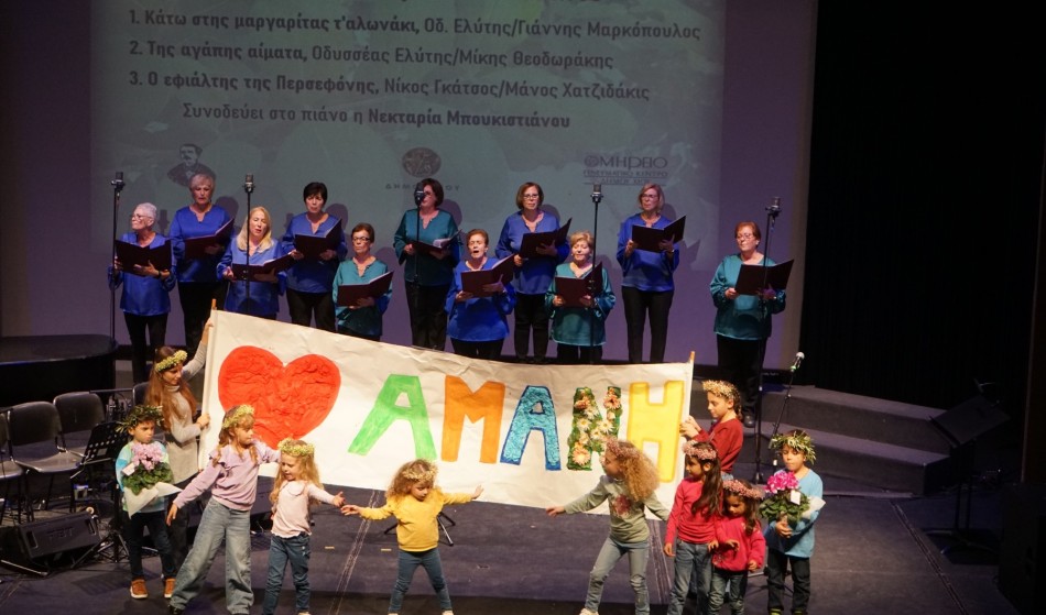 Το Ομήρειο γέμισε με ποίηση Οδυσσέα Ελύτη, μουσική των Μάνου Χατζιδάκι, Μίκη Θεοδωράκη, Σουγιούλ, Ζαμπέτα, Σαββόπουλου, Γκάτσου, και στίχους που άγγιξαν τις ψυχές των παρευρισκομένων.