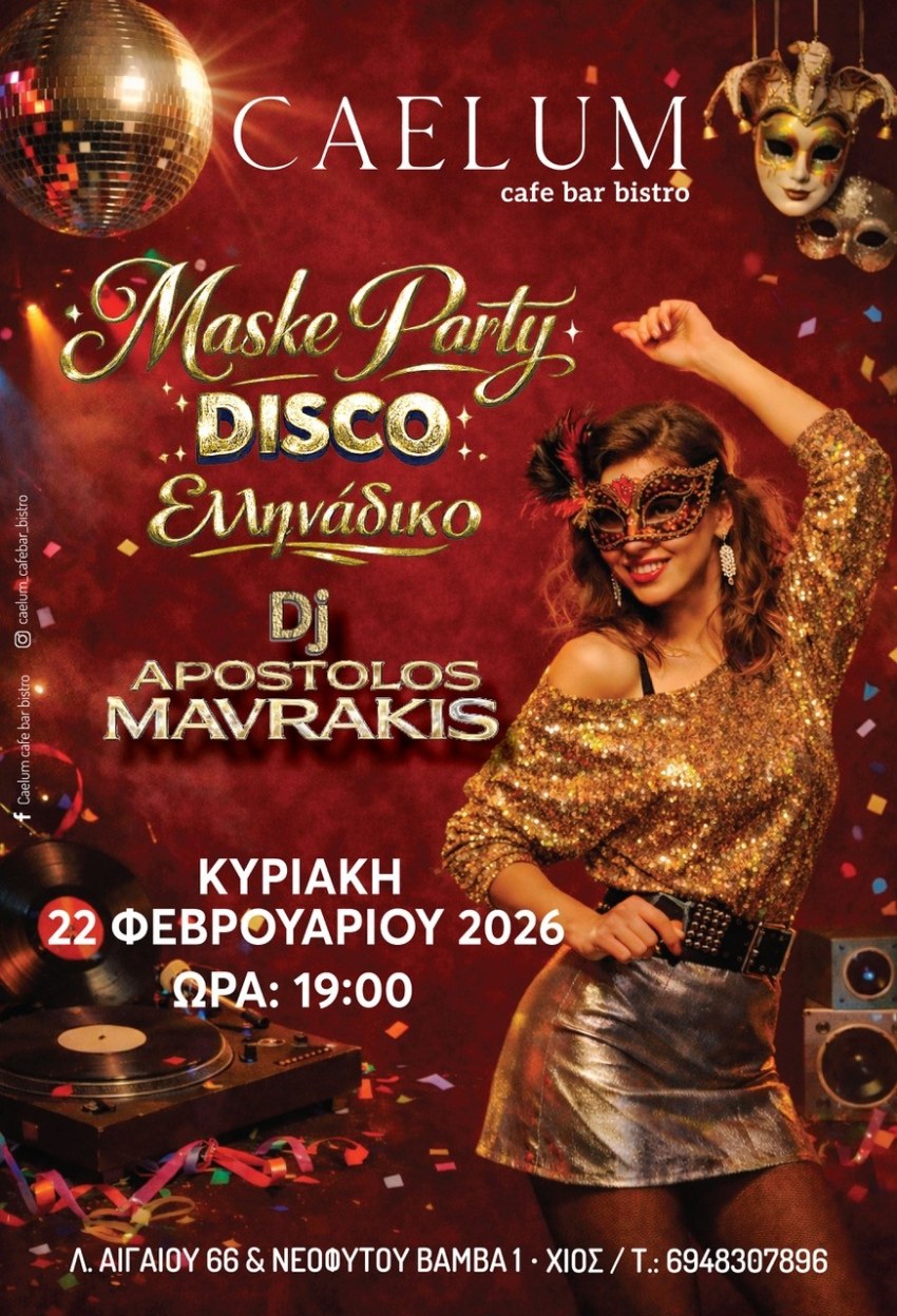 Το CAELUM cafe bar bistro ετοιμάζεται να φορέσει τη μάσκα του και να υποδεχτεί το κοινό του σε δύο εντυπωσιακά, αλλά εντελώς διαφορετικά θεματικά πάρτι που υπόσχονται να γράψουν ιστορία στη νυχτερινή διασκέδαση! Παρότι και τα δύο events είναι μασκέ, το καθένα έχει τη δική του ταυτότητα, το δικό του ρυθμό και τη δική του μοναδική εμπειρία.