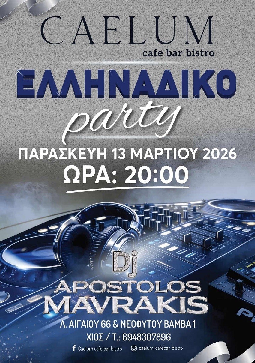 Την Παρασκευή 13 Μαρτίου 2026, στις 20:00, το Caelum, στην καρδιά της παραλίας, γίνεται το επίκεντρο της διασκέδασης. Αυτό το κλασικό, πλέον, Ελληνάδικο πάρτυ, διατηρεί όλο το κέφι και την ελληνική διάθεση που το χαρακτηρίζει, αλλά με νέο ραντεβού.