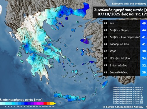 Σε Καρδάμυλα και Ψαρά ένα από τα μεγαλύτερα ύψη βροχής πανελλαδικά