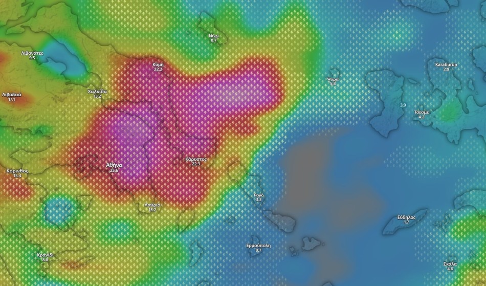 Ιδιαίτερη ανησυχία προκαλούν οι πολύ θυελλώδεις νοτιοανατολικοί άνεμοι στο κεντρικό και νότιο Αιγαίο, οι οποίοι θα φτάσουν τα 8 με 9 μποφόρ και τοπικά στα Δωδεκάνησα έως και τα 10 μποφόρ.