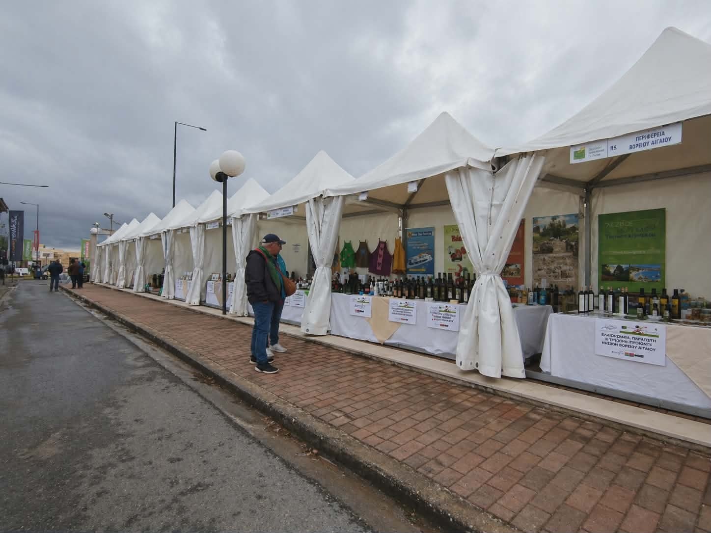 Η Περιφέρεια Βορείου Αιγαίου, συμμετείχε με ένα μεγάλο περίπτερο συνολικού εμβαδού 60 τ.μ., εντός του οποίου φιλοξενήθηκαν εντελώς δωρεάν: α) οι ελαιοκομικές επιχειρήσεις του Βορείου Αιγαίου που συμμετείχαν με φυσική παρουσία εκπροσώπων τους, β) οι ελαιοκομικές επιχειρήσεις των νησιών που συμμετείχαν με ασυνόδευτα ελαιοκομικά προϊόντα προς διαφήμιση, και γ) τα συνοδευτικά των ελαιοκομικών προϊόντων, που χρησιμοποιήθηκαν για τις γευσιγνωστικές δοκιμές – κεράσματα προς τους επισκέπτες.