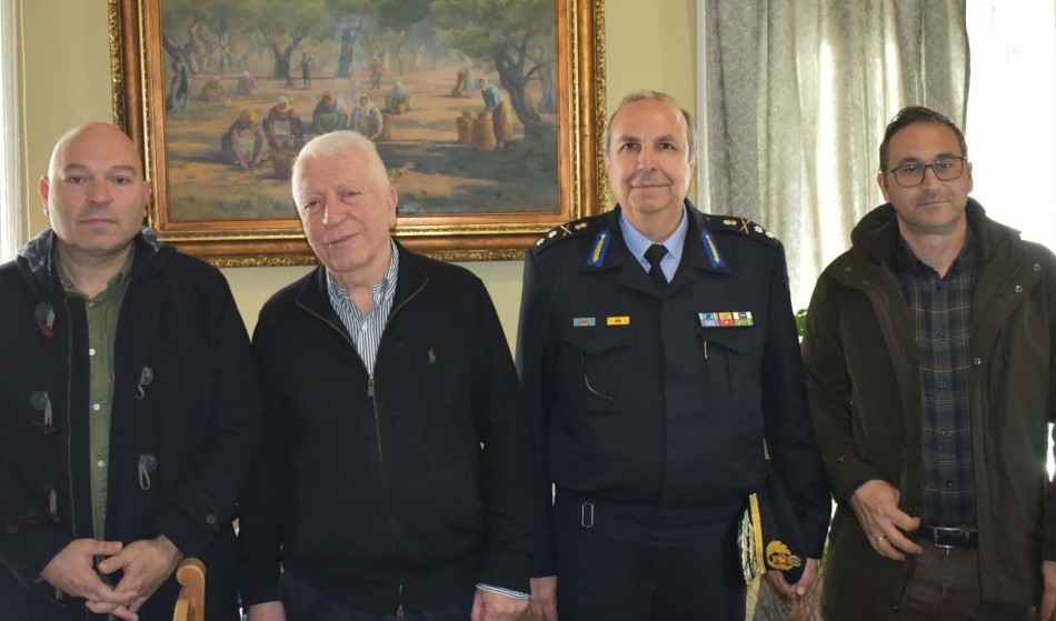 Ο Περιφερειάρχης Βορείου Αιγαίου Κωνσταντίνος Μουτζούρης συναντήθηκε σήμερα με τον νέο Συντονιστή Πυροσβεστικών Επιχειρήσεων Βορείου, Νοτίου Αιγαίου και Κρήτης, Υποστράτηγο Μιχάλη Σεληνιωτάκη, παρουσία των Αντιπεριφερειαρχών Κώστα Αρώνη και Χρυσόστομου Χατζηκυριαζή.