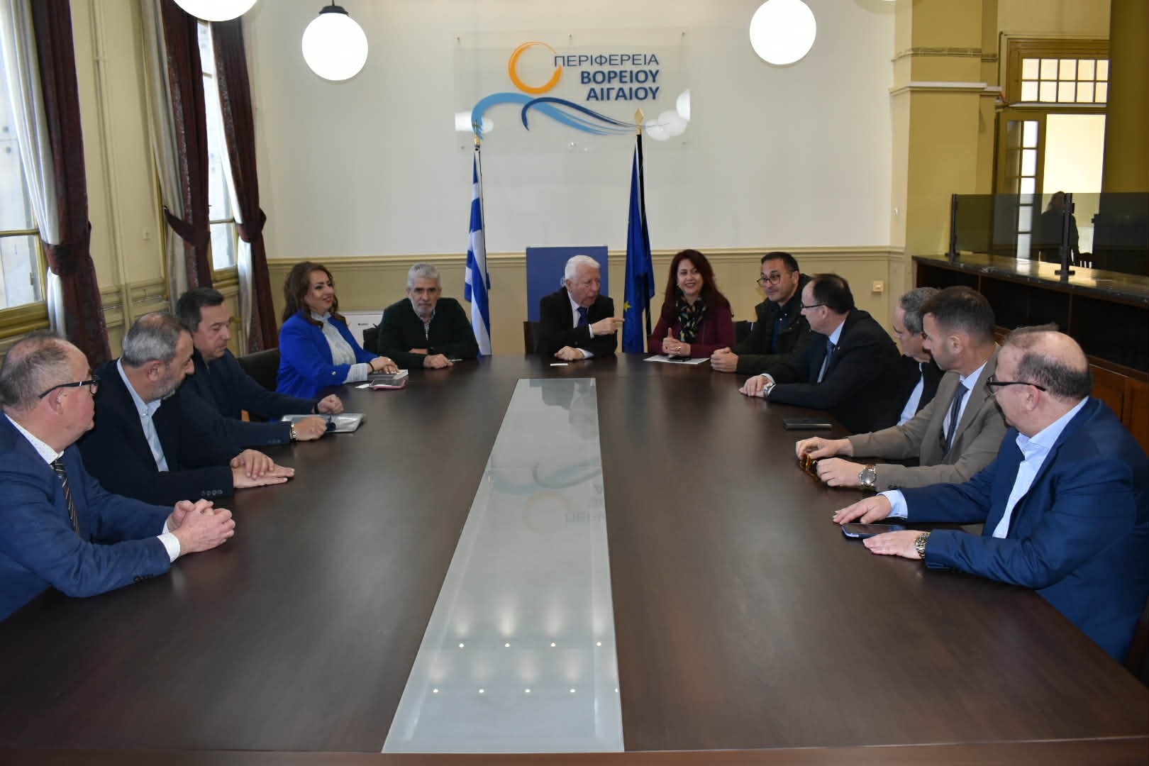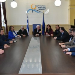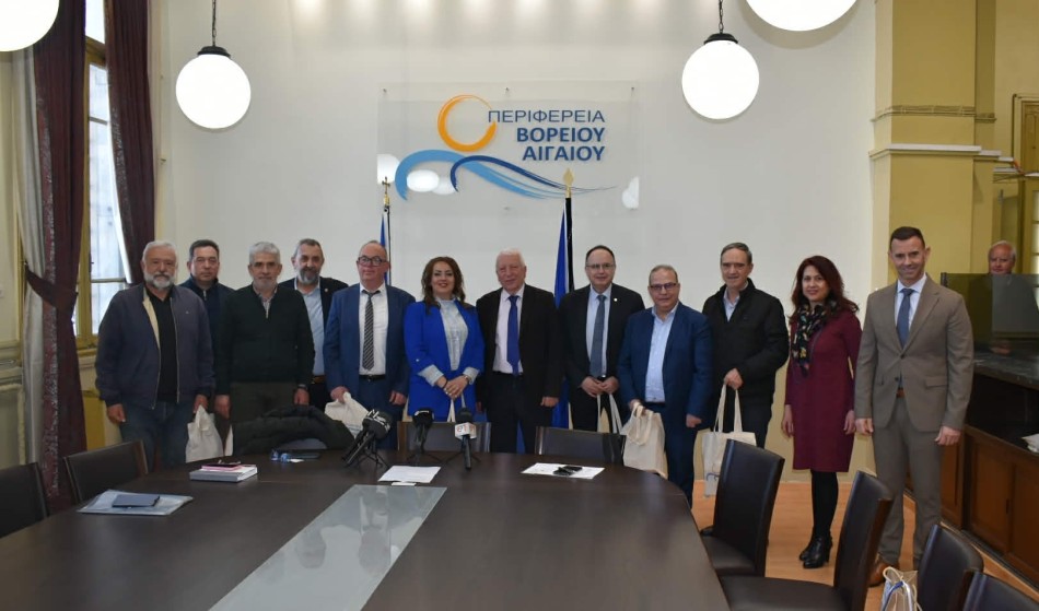 Ο Περιφερειάρχης Βορείου Αιγαίου Κωνσταντίνος Μουτζούρης συναντήθηκε σήμερα με εκπροσώπους Επιμελητηρίων από το Βόρειο Αιγαίο και την Θεσσαλία με βασικό θέμα συζήτησης την ακτοπλοϊκή σύνδεση των νησιών του Βορείου Αιγαίου με τον Βόλο.