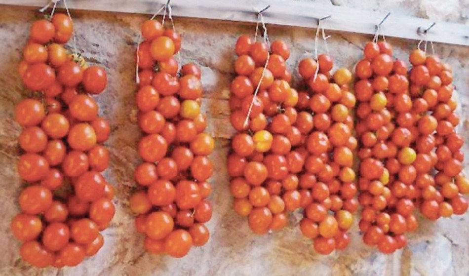 Οι παραγωγοί συγκομίζουν παραδοσιακά τον καρπό χωρίς να αφαιρούν τον μίσχο, μια πρακτική που συμβάλλει σημαντικά στη μεγαλύτερη διάρκεια συντήρησής του. Χαρακτηριστικός είναι και ο τρόπος αποξήρανσής του με το πολύ ιδιαίτερο πλέξιμο των τσαμπιών για τη δημιουργία «ρέστας», που κρέμεται στη σκιά και συμβάλλει στη διατήρηση του βαθύ κόκκινου χρώματος του καρπού.