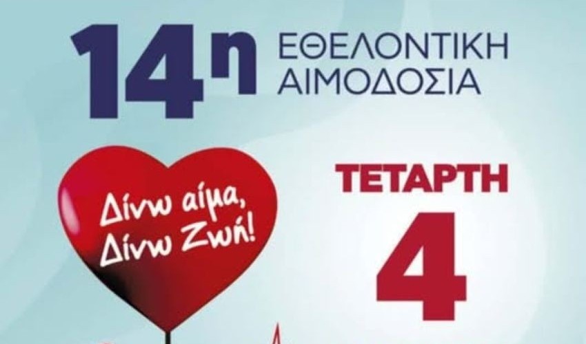 Με το σύνθημα « Δίνω αίμα, Δίνω Ζωή! » διοργανώνει την 14η εθελοντική αιμοδοσία ο Πολιτιστικός Επιμορφωτικός Σύλλογος Νεοχωρίου Χίου « Άγιος Μηνάς » σε συνεργασία με το τμήμα Αιμοδοσίας του Σκυλιτσείου Νοσοκομείου Χίου.