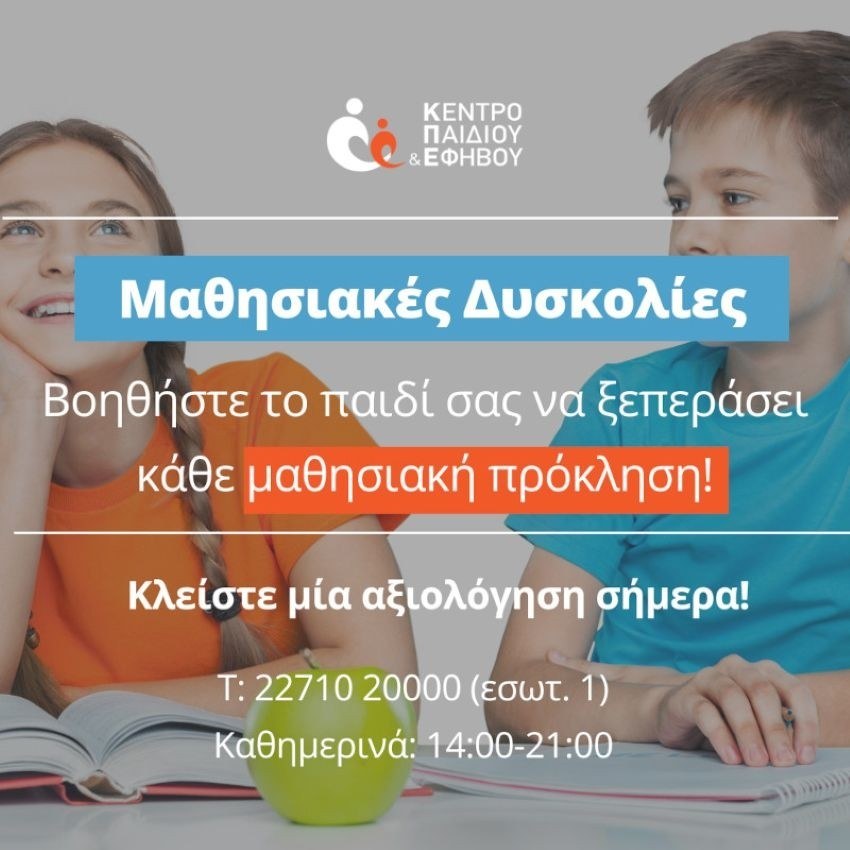 Πληροφορίες: Τμήμα Παιδιών και Εφήβων - Κέντρο Παιδού και Εφήβου, τηλ 2271020000 (εσωτ.1)